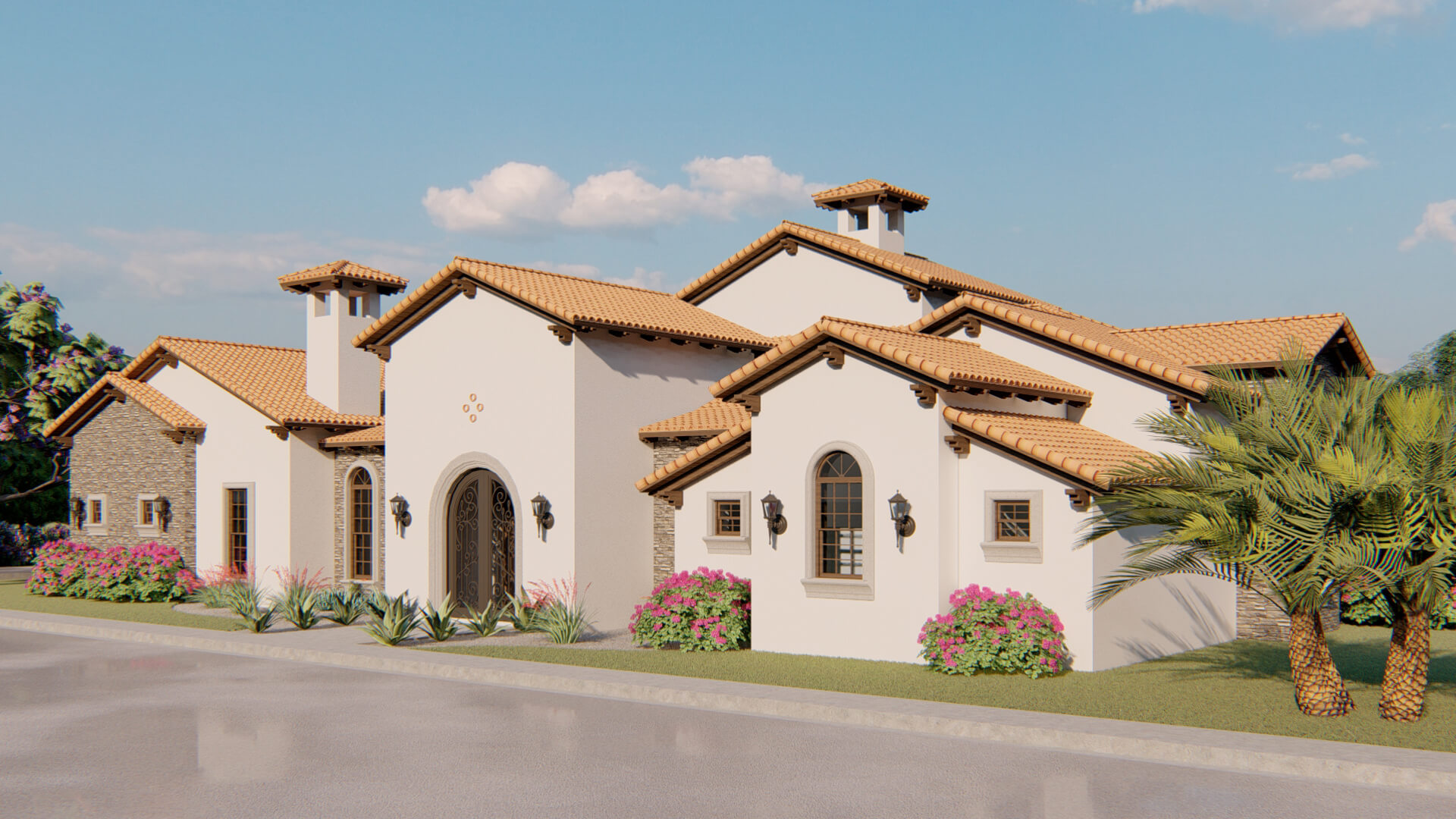 This charming Mediterranean-style house features a timeless design characterized by its elegant stucco façade and terracotta roof tiles. Arched doorways and windows add to the classic aesthetic, while stone accents provide texture and warmth. The inviting entrance is framed by lush landscaping, enhancing the overall curb appeal. Inside, spacious living areas flow seamlessly, designed for comfort and functionality. This home beautifully combines traditional elements with modern living, creating a serene and welcoming environment perfect for family gatherings and entertaining.